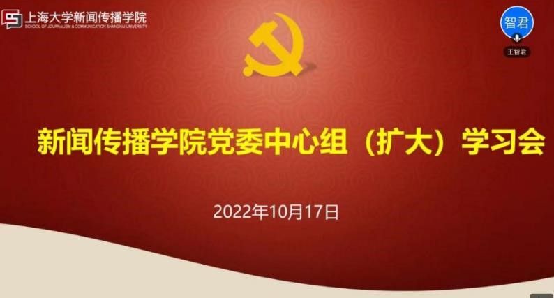 10月17日下午,新闻传播学院党委召开中心组(扩大)学习会,认真学习领会习近平总书记在中国共产党第二十次全国代表大会上所作的《高举中国特色社会主义伟大旗帜,为全面建设社会主义现代化国家而团结奋斗》的报告精神。