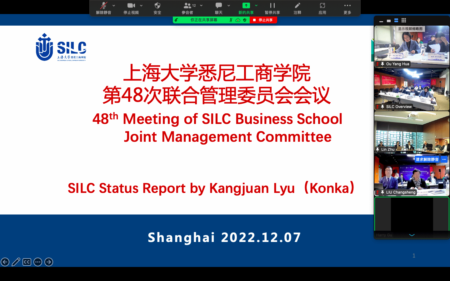 悉尼工商学院院长吕康娟向委员会做学院师资规划和2022年工作报告,并就成立悉尼工商学院校友中心的提案和博士单学位合作项目的进展做了单独汇报。联合管理委员会对成立校友中心的方案表示大力支持,并对博士项目取得的进展表示祝贺。悉尼科技大学财务总监Rene Petersen做SILC 2022年财务执行和2023年预算情况报告。悉尼工商学院副院长胡笑寒汇报了SILC品牌战略项目进展。UTS商学院副院长Leona Tam做了商科课程管理委员会报告。UTS工程与信息技术学院国际教育主任Eva Cheng做了工程管理硕士课程管理委员会报告。UTSCollege国际教育质量项目经理ChrisElbadawi汇报了UTS College质量管理委员会的工作情况。