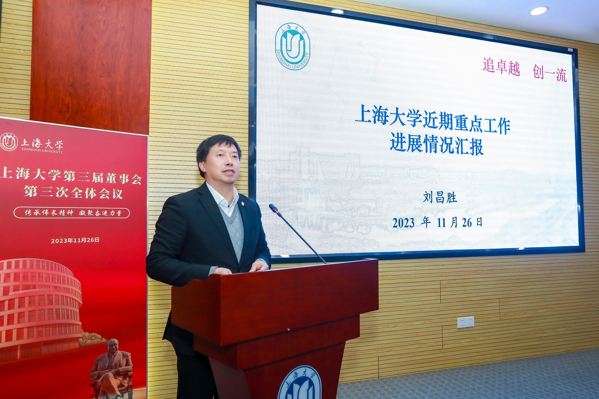 刘昌胜校长作学校发展报告,从学校概况、人才培养、师资队伍、科研及服务和学科建设等方面回顾了近一年来学校发展取得的新成绩,并就学校下一阶段的工作思路和各项事业推进计划作简要介绍。