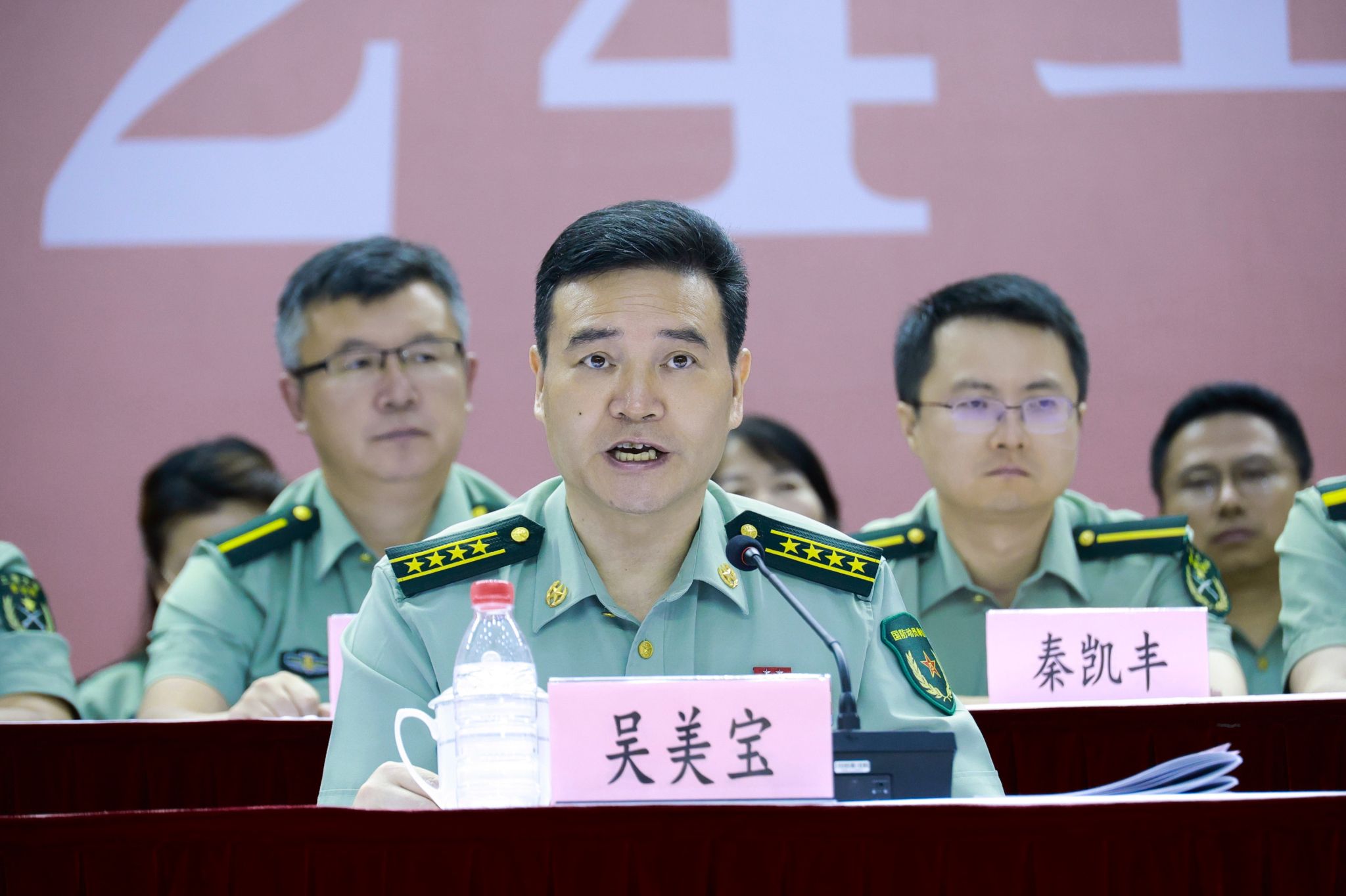 上海警备区党委常委、战备建设局大校局长吴美宝,军训师师长、73181部队上校副政治委员鲍俊成,宝山区人民武装部上校副部长许书奇,校领导成旦红、刘昌胜、胡大伟、聂清、王从春、沈艺、曾军,学校相关部处、学院领导以及全体军训师指战员出席了此次军训成果汇报暨总结表彰大会。