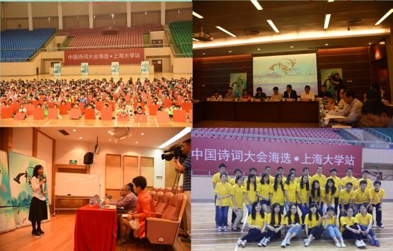 节目选拔包含“万里挑一”海选节目录制和选手面试选拔两个环节。“中国诗词大会”宣传影像“万里挑一”海选节目录制于5月31日下午举行,来自上海市的500名大中小学生和来自上大的40多名志愿者参与了节目录制活动。“中国诗词大会”东部部分省份选手导演组面试选拔于6月1日下午举行,来自江苏、安徽、上海等省市的120余名大中小学生和中学教师参加了导演组面试选拔。无论是腾出迎考时间参加海选还是代表上大参加电视台层层遴选,我校师生均有不俗表现,期待着入围选手在北京有更出色的成绩。