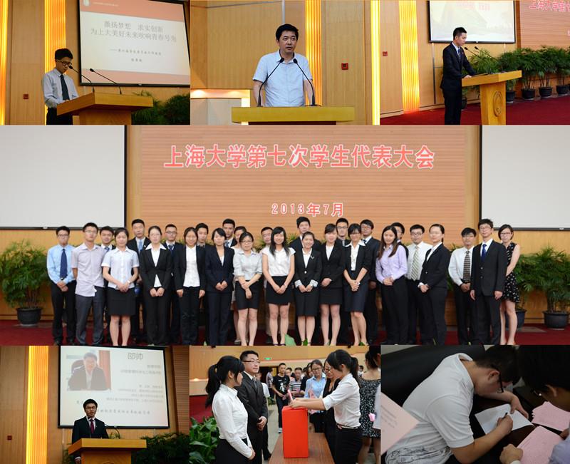 本次学代会在一段《致我们在学生会的青春》的视频中拉开序幕。校学生会历届主席代表通过视频向与会代表和学生会成员分享了学生会工作的心得和体会,也传达了对大会顺利举行以及学生会未来发展的寄语。在学代会第一次全体会议上,上海市学生联合会副主席李卓航、同济大学学生会主席吴弘扬分别代表上海市学联与兄弟高校代表向本次大会致以贺词。随后,校学生会主席陈黄超同学作了以《激扬梦想,求实创新——为上大美好未来吹响青春号角》为主题的第六届学生委员会工作报告,以一段精彩的视频短片回顾了过去两年学生会工作所取得的一些成绩:我们用心服务,推动校园民主有序前进,通过联合职能部门充分利用各类沟通平台更好地服务于同学;我们打造精品,营造校园文化昂扬向上,通过搭建各类学术、文化舞台促进全面素质的培养;我们广泛学习,通过校际、院系联动交流开阔思路,开创新局面;我们积极探索,提升学生干部素质建设,通过打造多元化平台和完善制度化考核,提高学生干部的执行能力,培养综合素质。同时,在报告中也提出目前学生会发展中存在学生会影响力、自身服务能力不够等主要问题,希望学生干部能够正视问题,加强总结和思考,从而逐步实现“自我教育、自我管理、自我服务”的工作主旨。而对于今后的展望,要将思想引领与喜闻乐见的活动载体紧密结合,将权益服务与及时有效的沟通机制紧密结合,将校园文化与通识教育的培养目标紧密结合,将自身建设与日益增长的多元需求紧密结合,从而打造更加积极向上的校园文化氛围,完善更加沟通快捷的校园服务机制,培养更加适应学校发展、社会发展的学生干部。