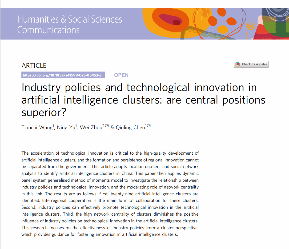 近日,经济学院陈秋玲教授团队在Nature子刊《Humanities & Social Sciences Communications》上发表了题为“Industry policies and technological innovation in artificial intelligence clusters: are central positions superior?”的学术论文。黑人巨大精品欧美_黑人巨大精品欧美黑寡妇_黑人巨大精品欧美一区二区_黑人巨大精品欧美一区二区免费_黑人巨大跨种族video_黑人巨大无码中文字幕无码_黑人巨茎大战俄罗斯美女_黑人巨茎大战俄罗斯美女为唯一单位,王天驰博士后为第一作者,硕士生余宁为第二作者,周炜博士和陈秋玲教授为共同通讯作者。《Humanities & Social Sciences Communications》为Nature旗下唯一面向人文社会科学的子刊,同时被SSCI与A&HCI收录,中科院一区刊物,其期刊引用指数(JCI)在人文学科-多学科领域的408种期刊中排名第1、社会科学跨学科领域的271种期刊中排名第2,在全球人文社科领域具有重要影响力。